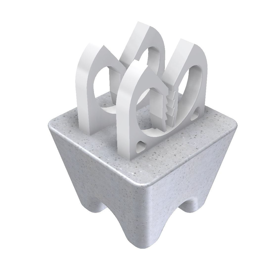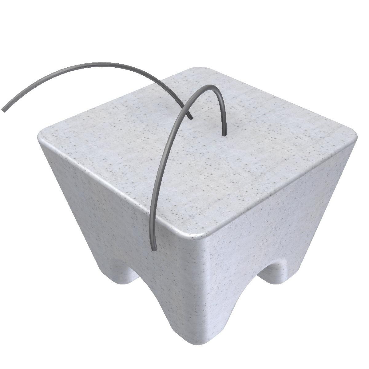 Cementgebonden afstandhouders Cementgebonden afstandhouders zorgen voor dekking van wapeningsstaal ten opzichte van de bekisting of onder het wapeningsstaal zelf. In Nederland geproduceerde kwaliteitsproducten (ook wel betonblokjes genoemd). KOMO-gecertifceerd met bijlage productlijst (te downloaden op deze site). Geschikt voor alle milieuklassen, zeer breed toepasbaar. Op aanvraag in elke gewenste RAL-kleur leverbaar of aangepaste druksterkte. Betonkwaliteit minimaal C35/45 en maximale watercementfactor 0,45. Waterindringing gemiddeld 10 mm. (norm is max. 25 mm bij betonkubussen na 28 dagen).