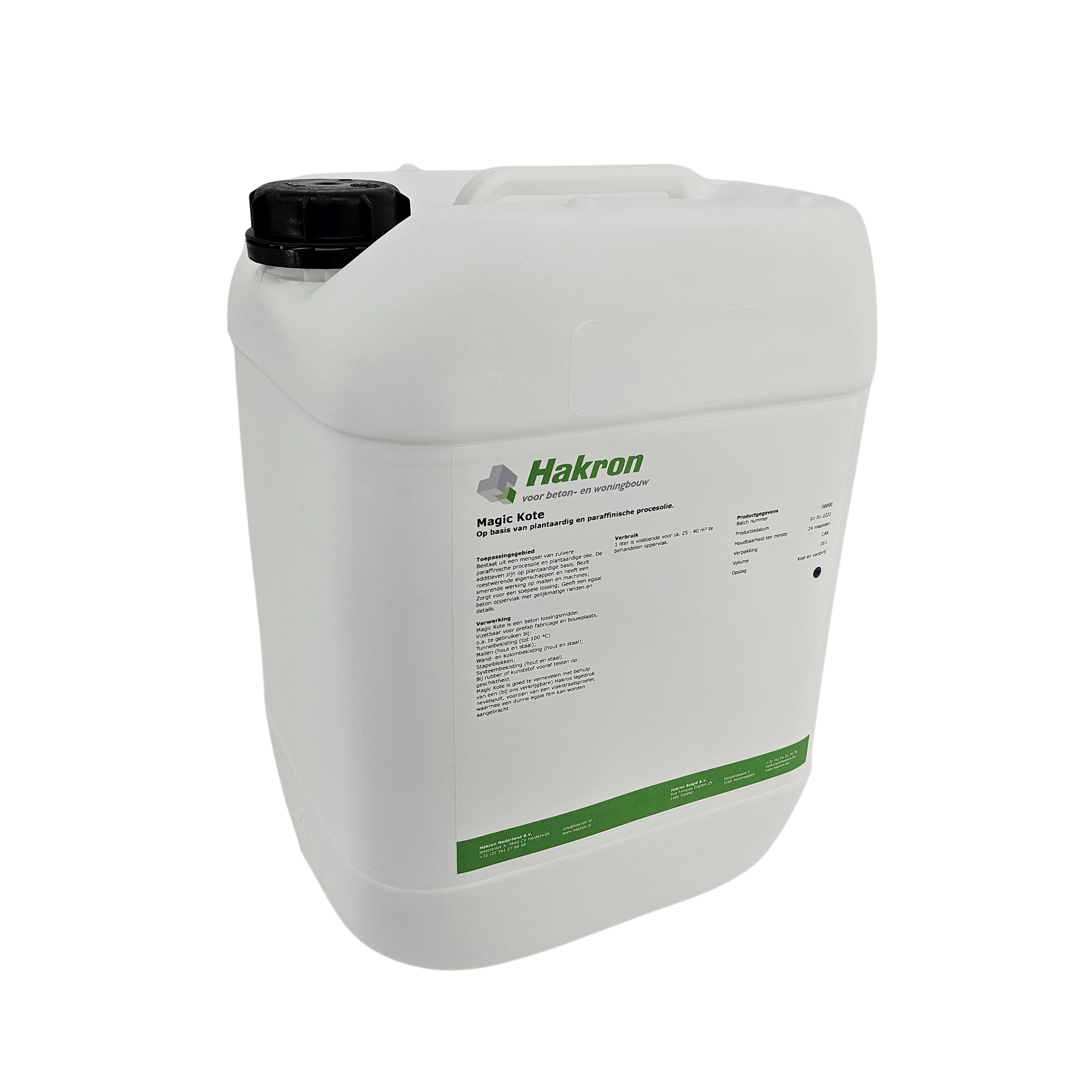 - Voorkomt hechting van beton aan de bekisting en geeft een gladder betonoppervlak.